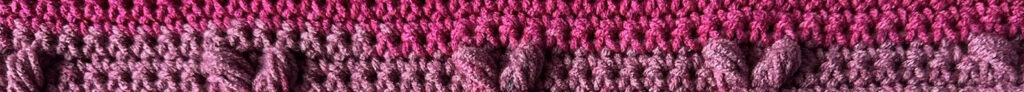To avoid distortion or curling of the fabric, make sure to work front post puff stitches loosely and evenly. Excess tension on front post stitches can cause the pattern to lean or tighten.