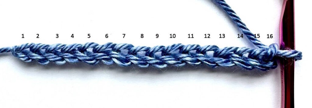 Row 1: Ch 16,
