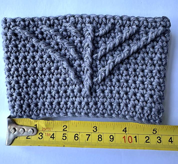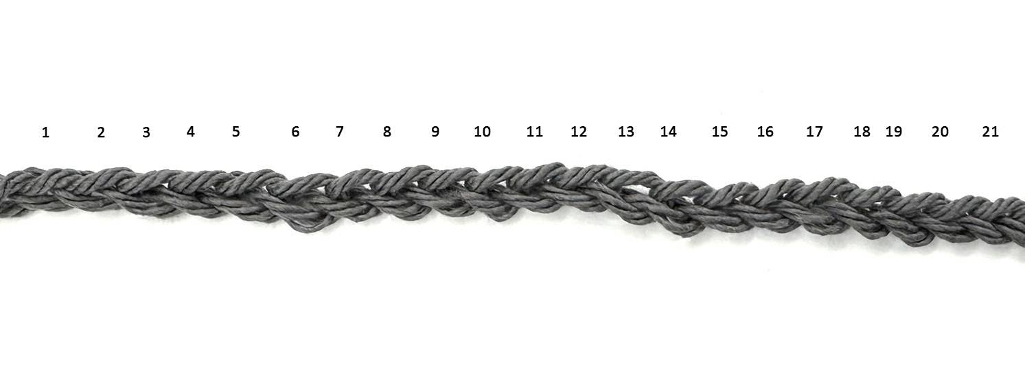 Yarn: Crafter’s Secret, Cotton (100% Cotton; #4 Medium / Worsted Weight; 71 g / 109 m [2.5 oz / 120 yd] per skein), color SLATE – approx. 28 g (43 m/47 yd/0.99 oz) used.